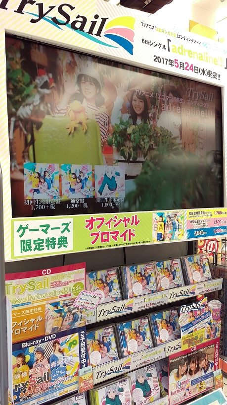 今月はそのTrySailちゃんの6枚目のSG「adrenaline!!!」がリリースされましたね!