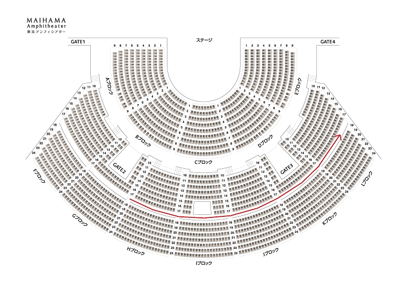 ステージと最前の間がほぼないアンフィで、しかも1列目を潰してたから、実質2列目という。