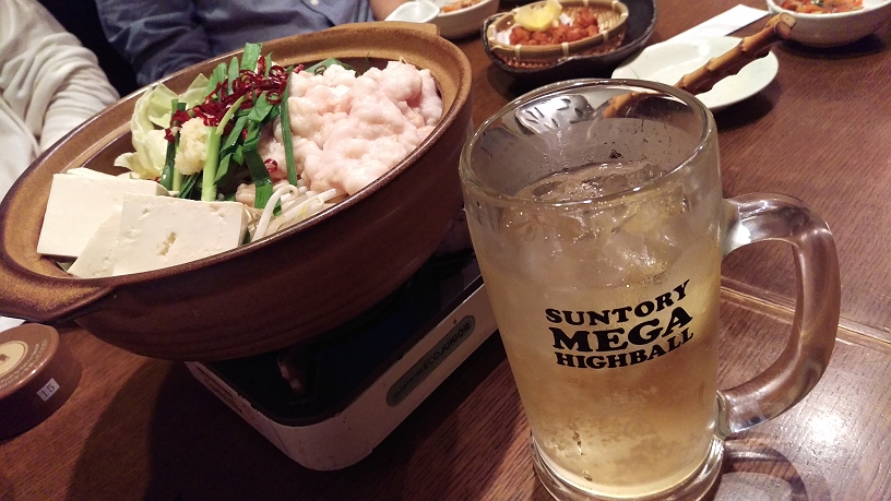 お疲れさまの打ち上げではもつ鍋とハイボールにしたよ(o・▽・o)