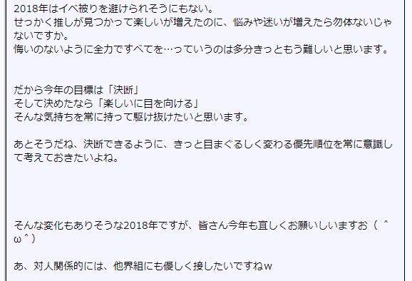 推し事においても元旦は無理までも、年始一週間にうちに何かしら目標を持ちたいものと毎年思っています。
