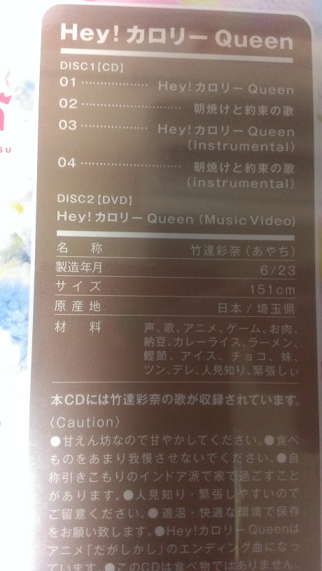 そして今週は待望のあやち8thSG「Hey! カロリーQueen」の発売でした(・∀・)