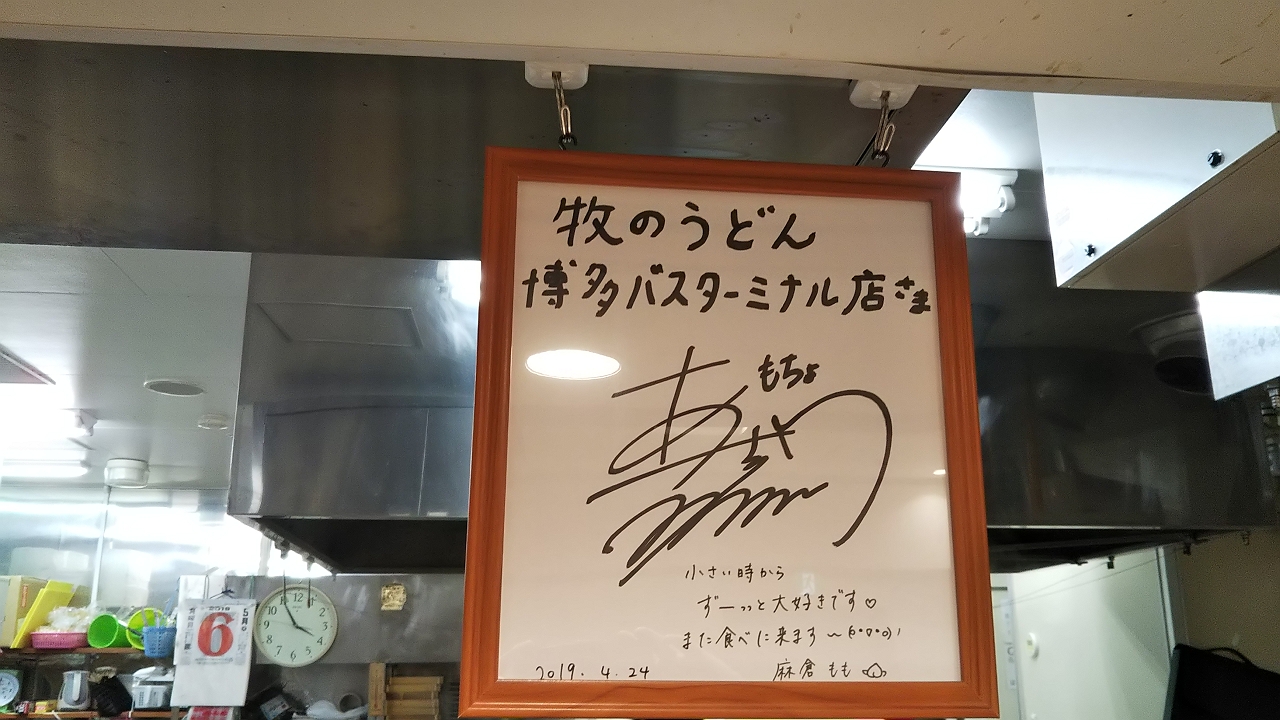 ちなみにこの日に行った博多バスターミナル店には、いつの間に来たのかもちょのサインがありました。